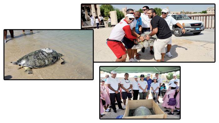 اطلقت الجمعية الكويتية لحماية البيئة امس من على شاطئ فندق الجميرة احدى السلاحف الكويتية الخضراء التي تعيش في جزيرة قاروه بهدف تتبع تحركاتها ومعرفة اماكن هجرتها والبيئات المختلفة التي تقصدها، وذلك برعاية الشيخة انتصار سالم العلي وبحضور ممثلي منظمة التنوع الاحيائي والقائمين على فندق الجميرة والشركة الوطنية للاتصالات وعدد من المهتمين بالبيئة وطلبة المدارس.