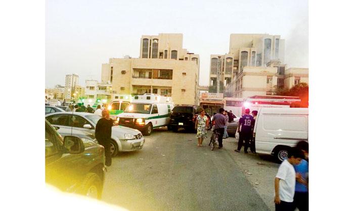 وتصاعدت أدخنة الحريق إلى الدور الثاني حيث تقطن احدى شققه عائلة يمنية فيها الأب والأم وأربعة أطفال أنقذهم رجال اطفاء مركز حولي الذي هرع إلى المكان لإخماد النيران في حين أصيب الأب باختناق ونقلته سيارات الاسعاف إلى مستشفى مبارك لتلقي العلاج.