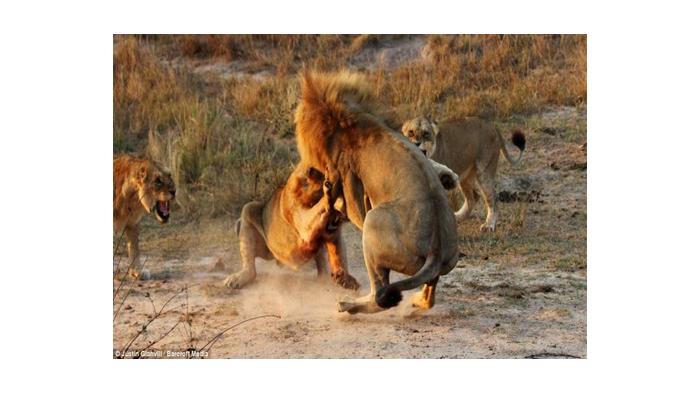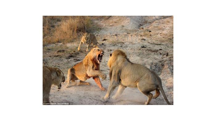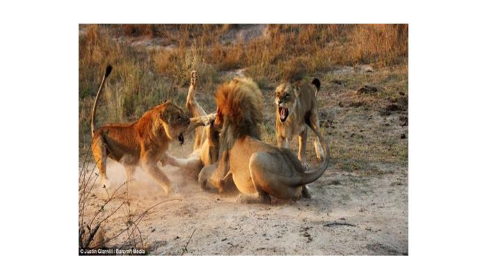 فهذا أسد شاب يملك من قوة الشباب والفتوة ما يملك، لم يقم وزناً ولا اعتباراً لبني جنسه، فأخذ يتحرش بأسد ضعيف في عقر داره وكأنه يستعرض ما وهبه الله من قوة أمام إناث المسكين، والذي كان فخراً لهم يوم كان بقوته، وكأنه يصفع هذا ويغازل تلك، فطرحه على الأرض طرحة أسقطت معها كرامته قبل أن يسقط جسده على الأرض.