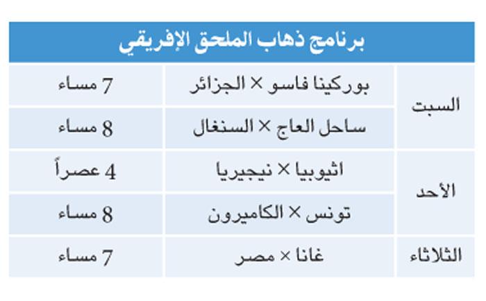 وتحل الجزائر ضيفة على بوركينا فاسو اليوم السبت في واغادوغو، فيما تلتقي تونس مع ضيفتها الكاميرون على ملعب رادس في العاصمة غدا الاحد، على ان تحل مصر ضيفة على غانا الثلاثاء المقبل في كوماسي.