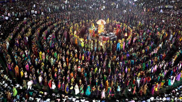 واحتشد نحو 500 ألف شخص عند المعبد لتأدية طقوس العبادة في مهرجان «دوسيهرا» الهندوسي.