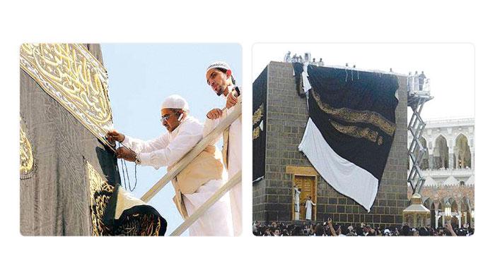 وقام سدنة بيت الله الحرام ومنسوبو الرئاسة العامة لشؤون المسجد الحرام والمسجد النبوي ومسؤولو مصنع كسوة الكعبة المشرفة بانزال ثوب الكعبة القديم واستبدال ثوب جديد به تمت صناعته من الحرير الخالص.