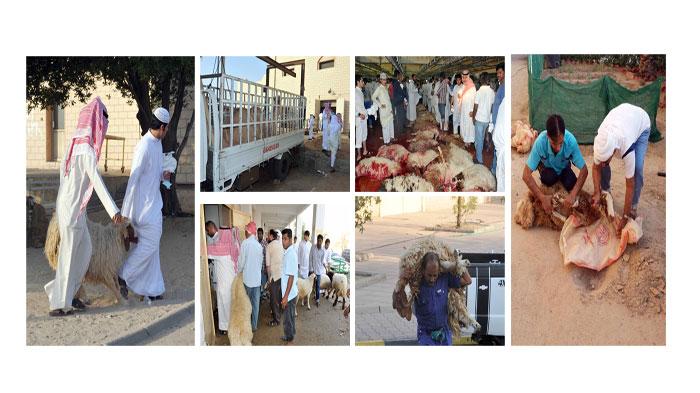 بينما استقبلت المسالخ منذ الصباح الباكر أمس عددا كبيرا من المواطنين والمقيمين لذبح الاضاحي قام اخرون بذبح اضحيتهم امام منازلهم ليشهد ذلك اهل بيته وليتعلم الابناء هذه السنة المباركة، وقد زادت المسالخ من قدرتها الانتاجية بزيادة عدد العاملين فيها من جزارين واطباء بيطريين ولم يخل الامر من مخالفة أنظمة ولوائح البلدية من خلال ذبح الاضاحي في الشوارع وساحات المنازل والزوايا بعيدا عن اعين الرقابة، وقد استنفرت فرق البلدية لرصد وضبط المخالفين في جميع الاماكن بالاضافة الى مراقبة المسالخ لمتابعة مدى التزامها بالضوابط الشرعية والقانونية في ذبح الاضحية.