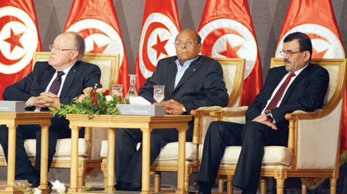تونس - ا ف ب: اجبرت تظاهرة لقوات الامن الجمعة الرئيس التونسي المنصف المرزوقي ورئيس الوزراء علي العريض ورئيس المجلس التأسيسي مصطفى بن جعفر، على مغادرة موكب رسمي تكريما لعنصرين من قوات الحرس الوطني قتلا الخميس برصاص مجموعة مسلحة شمال غرب البلاد، بحسب ما افاد مصور وكالة فرانس برس.