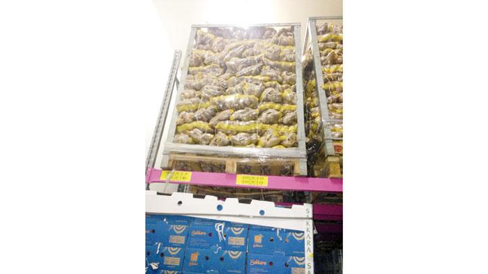 ضبطت وزارة التجارة والصناعة - ممثلة بفرق التفتيش التابعة لكل من طوارئ البدالة -135 ومركز الرقابة التجارية الكائن في السوق المركزي للخضار والفواكه في الصليبية السابع - 7 آلاف طن من الخضراوات والفواكه المخزنة في ثلاجات 36 شركة عمدت الى تخزين السلع والمواد الغذائية وانزال كميات قليلة منها في السوق لرفع أسعارها وتحقيق مكاسب أكبر، حيث قام المفتشون باتخاذ كافة الاجراءات القانونية مع تلك الشركات واحالتها الى النيابة العامة.