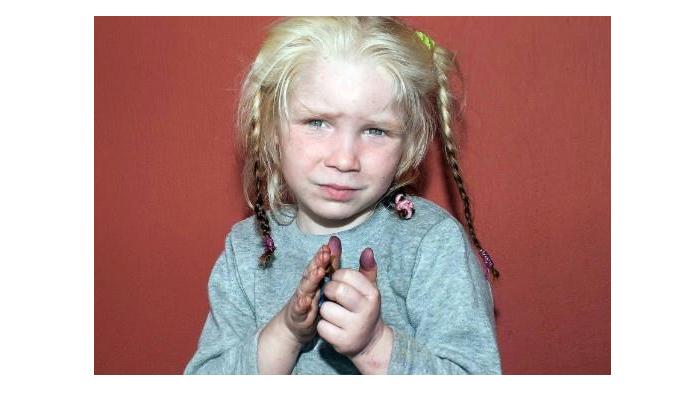 CNN-- وقفت الطفلة التي يتجاوز عمرها أربعة أعوام وكلها خجل أمام جهاز التصوير وهي تحاول شبك أصابع يديها وجدائل شعرها الأشقر غير المرتب تتدلى بما لا يحجب عينيها الزرقاوين.