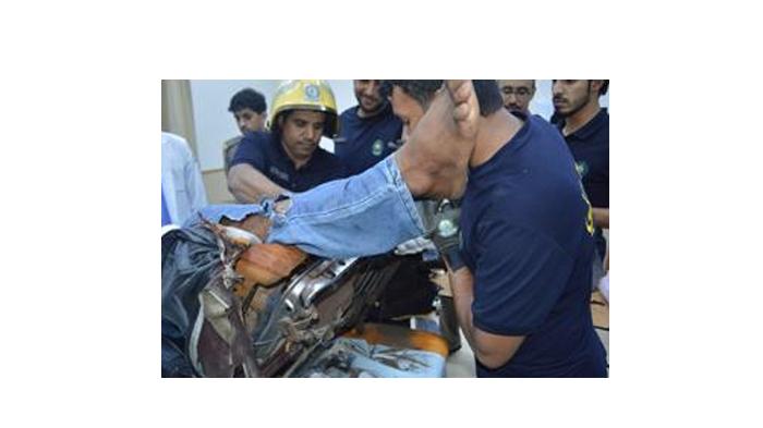 وأضاف أن عمليات الدفاع المدني بادرت بتحريك ثلاث فرق متخصصة في أعمال الإنقاذ يرافقها فرقة إطفاء وإسعاف مع تمرير البلاغ للجهات المعنية ذات العلاقة ومع وصول الفرق لموقع الحادث وبعد المعاينة اتضح أن "سيخين" عبرت الهيكل أحدهما استقر بالقدم اليمنى للسائق، بينما نفذ الثاني من أعلى الفخذ الأيسر واستقر الثالث بالمقعد دون إلحاق الضرر بقائد السيارة، مشيراً إلى فرق الإنقاذ اتخذت بعد المعاينة عمل مساحة لتتمكن من إدارة عمليات فصل الأسياخ من هيكل السيارة وفصل المقعد نهائيا عن هيكل السيارة ليسهل نقل المصاب إلى غرفة العمليات بمستشفى الملك فهد بجدة وبالفعل تمكنت الفرق من فصل المقعد ومن ثم إخراج المصاب ونقله عن طريق الهلال الأحمر إلى مستشفى الملك فهد برفقة فرقة إنقاذ، وبعد الوصول كان الطاقم الطبي بالمستشفى مستعدا لاستقبال الحالة وإدخالها مباشرة لغرفة العمليات مع متخصصين من فرقة الإنقاذ شاركوا الكادرالطبي حتى تمكنوا من فصل المقعد نهائيا عن جسد المصاب ليكمل الكادر الطبي عمله في إخراج السيخ من أعلى فخذ المصاب وتضميد الجراح العميقة التي تأثر منها نتيجة الحادث.