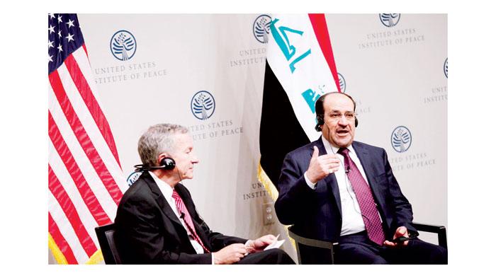 المالكي متحدثاً أمام منظمة «انستيتيو أوف بيس» للابحاث في واشنطن (رويترز)