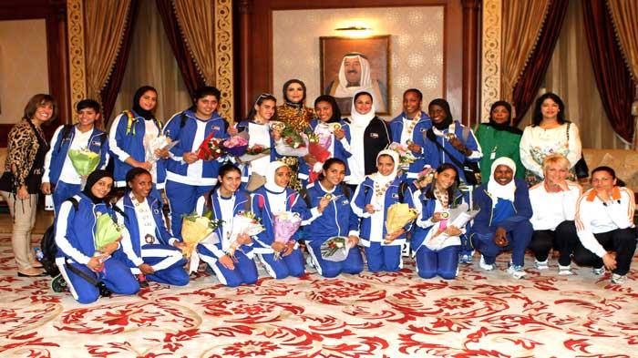 وحظي المنتخب باستقبال حافل في مطار الكويت الدولي الليلة الماضية قبل ممثلي الهيئة العامة للشباب والرياضة والاتحاد الكويتي لرياضة المرأة.