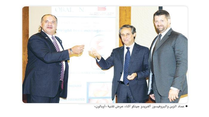 ثمن رئيس معهد العلوم الجراحية وقسم جراحة المناظير، ورئيس مركز التخصصات المتنوعة في علاج السمنة المرضية في جامعة سابينزا الايطالية البروفيسور ألفريدو جينكو استخدام علاج التخلص من السمنة «اوبالون - بالون المعدة السهل» الجديد، مؤكدا بساطة العلاج وسهولة تطبيقه.