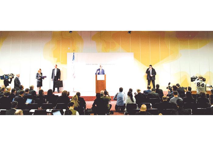 وقال كيري للصحافيين في ختام المفاوضات «جئنا الى جنيف بتصميم على التأكد من ان إيران لن تمتلك سلاحاً ذرياً وهذا يبقى هدفنا».