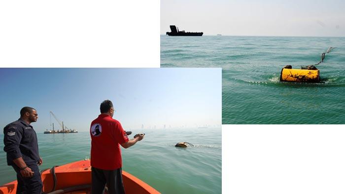 وأعلن وليد الشطي مسؤول العمليات البحرية ان الفريق رصد أكثر من 10 مرابط بحرية عائمة وذلك بالتعاون مع مركز اطفاء ميناء الشويخ التابع للادارة العامة الاطفاء، وهذه المرابط العائمة تشكل خطورة كبيرة على مرتادي البحر وخاصة لمواقع الحيشان والدوحة نظرا لوجودها بالممر الملاحي المؤدي لهذه المواقع ولكونها شبه مغمورة تحت سطح الماء ولا توجد عليها أي إنارة تحذيرية، وبين ان على رواد البحر الابتعاد عن موقع عمل مشروع جسر الشيخ جابر باحداثية رقم: