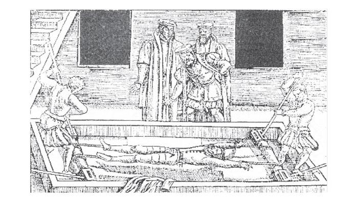 وقد سام الاسبان المسلمين في اسبانيا اشد العذاب بطرق وحشيه كالحرق بالنار والتقطيع بالمنشار وحسب الصور المنشورة في هذا البحث والتي هي عبارة عن رسومات رسمها فنانين أسبان تمثل مرحلة من مراحل تاريخ اسبانيا وهي مرحلة محاكم التفتيش لاجبار المسلمين على اعتناق الدين المسيحي، واستمر هذا العنف اللاانساني لمدة اربعة قرون طوال القرن السادس عشر والسابع عشر والثامن عشر والتاسع عشر، لقد دون المؤرخون هذه المذابح الشنيعة سواء منهم الاسبان او الاوربين اوالعرب، وهي دليل قاطع على تلك المذابح التي ارتكبت باسم الدين المسيحي وأن المسيح عليه السلام برئ من هذه المذابح حيث ما جاء به السيد المسبح هو التسامح والمحبة والسلام.