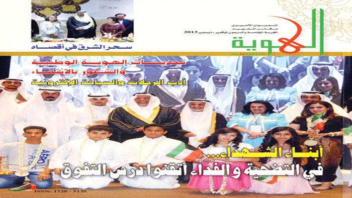 وقد تضمن العدد مواضيع عدة، سلّطت الضوء على أبرز معاني تأصيل الهوية الوطنية وترسيخ الانتماء للأرض وتوطيد قيم المواطنة الحقة، وقد استهل بمقال افتتاحي لمديرة التحرير فايزة المانع بعنوان «الهوية والعولمة جروح متبادلة»، لفتت فيه الى انعكاس تأثيرات العولمة على كل مناحي الحياة، حتى بات المرء حائراً في «الموازنة بين هوية منفتحة وهوية منغلقة (...) لا يعرف ما يصدُّ وما يردُّ، وما يُبقي وما يُنفي».
