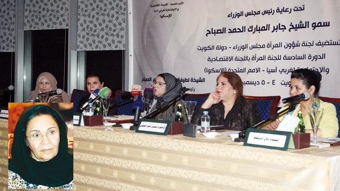 وقالت في كلمة ألقتها بالنيابة عنها المستشارة بلجنة شؤون المرأة هدى الشايجي في مستهل مؤتمر صحافي بمناسبة استضافة دولة الكويت للدورة السادسة للجنة المرأة باللجنة الاقتصادية والاجتماعية لغربي آسيا (الاسكوا) التابعة للأمم المتحدة يومي 4و5 ديسمبر تحت رعاية سمو الشيخ جابر المبارك الحمد الصباح رئيس مجلس الوزراء ان الدورة ستناقش العديد من القضايا الحيوية وفي مقدمتها عملية تمكين المرأة اقتصاديا واجتماعيا وسياسيا والتحديات التي تواجهها.