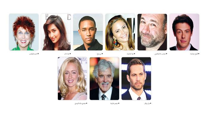 طوى عام 2013 صفحته بجميع ما يحمله من ذكرى جميلة أو مؤلمة، ودعت هوليوود، خلاله نخبة من ألمع نجومها، الذين وافتهم المنية خلال هذا العام، وستفتقدهم الشاشة العريضة وجمهورهم الكبير في انحاء العالم.. والسطور الآتية تحمل قصة وفاة كل نجم منهم: