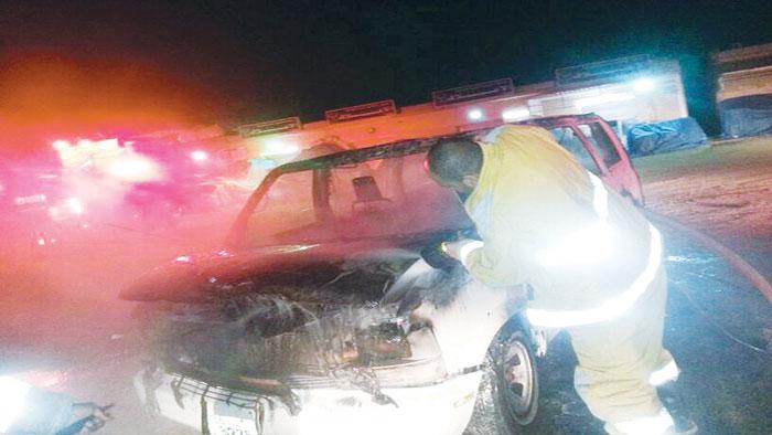 أخمد رجال الاطفاء حريقاً اندلع في مركبة رباعية الدفع على الطريق الرئيسي فجر أمس، وعند تلقي عمليات الداخلية بلاغاً بالحريق انتقلت للمكان فرقة اطفاء كبد بقيادة رئيس النوبة الرائد انور المطيري والملازم اول فيصل العبدي والرقباء عبدالامير الحسن وفيصل الموسوي وابراهيم الشمري، وبعد السيطرة على الحريق واخماده سجل تقرير بالحادث احيل الى جهة الاختصاص.
