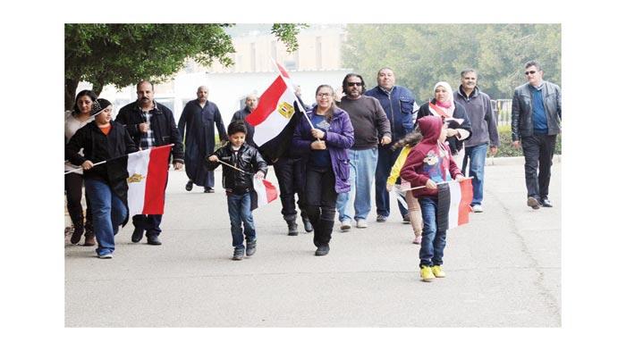 حضور كثيف وانتظام واحترام للدور وفي الإطار إحدى الأسر المصرية