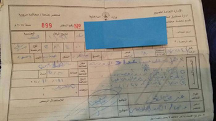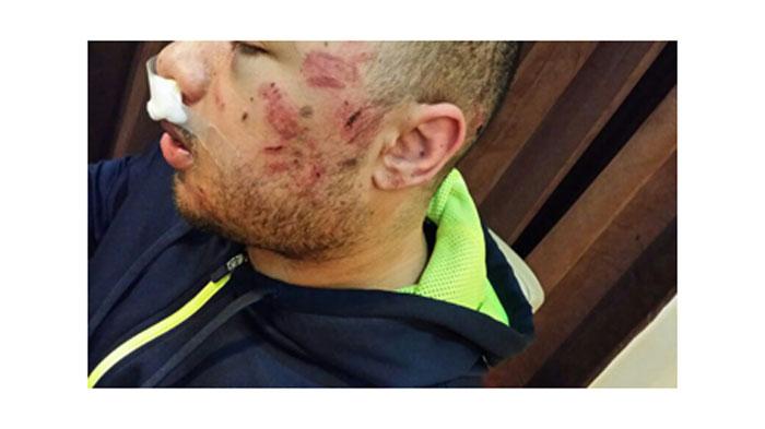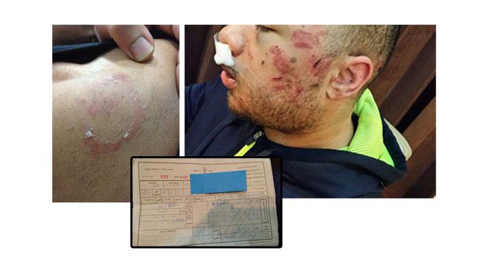 مكان العضة على كتف العسكري - اصابات في وجه المواطن - صورة من المخالفة