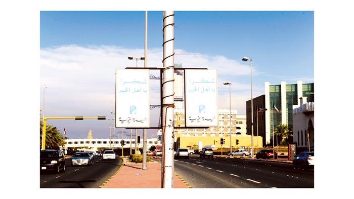 وارتفعت في وسط تلك الشوارع واماكن اخرى من الكويت لافتات وزعتها الهيئة الخيرية الاسلامية العالمية كتب عليها (شكرا يا اهل الخير) تعبيرا عن التقدير للمساهمات التي قدمها الشعب الكويتي لمساعدة الشعب السوري الشقيق داخل بلاده وخارجها.