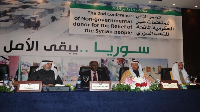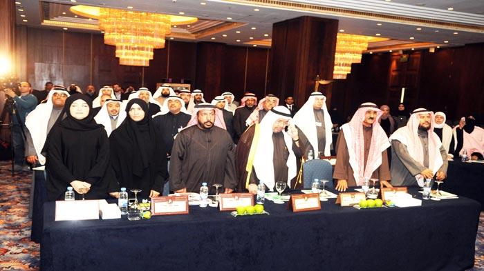 د.عبدالله المعتوق متوسطا المتحدثين في افتتاح مؤتمر المانحين للمنظمات غير الحكومية