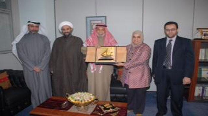 وسلم الدكتور خالد المذكور رئيس اللجنة العلمية لمنتدى قضايا الوقف الفقهية كواكب الملحم درع التكريم بحضور كل من د.أحمد حسين عضو اللجنة العلمية للمنتدى، والدكتور ابراهيم عبدالباقي عضو مقرر في المنتدى، ومنصور الصقعبي مدير ادارة الدراسات والعلاقات الخارجية حالياً.