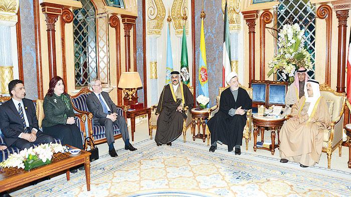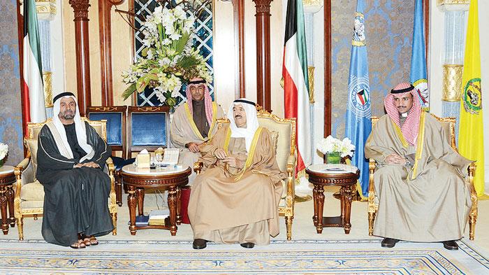 سمو الأمير مستقبلا رئيس البرلمان العربي بحضور مرزوق الغانم