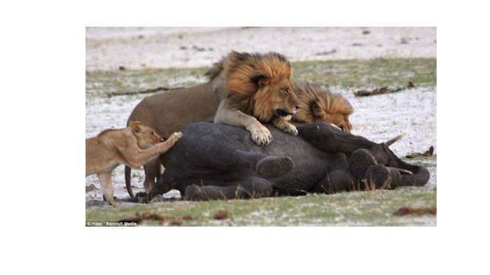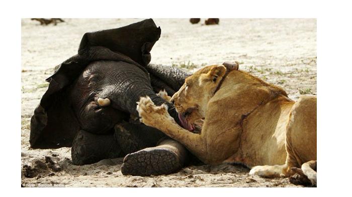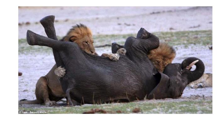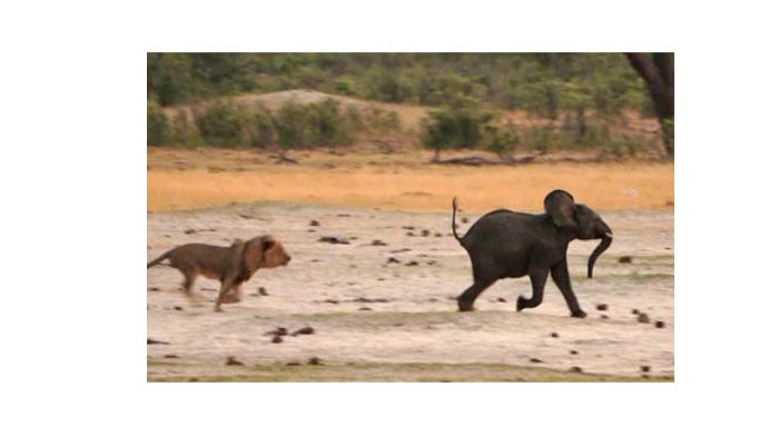 رغم محاولاته المتواصلة لمدة ثلاثين دقيقة إلا أن نهايته كانت محتومة بين أنياب الأسود، ليعيش فيل صغير في عمر ما بين الثلاثة والأربعة أعوام، شرد عن قطيعه لحظات عسيرة انتهت بأن خارت قواه وسقط على الأرض صريعاً بينهم.