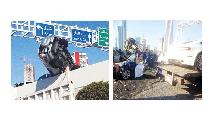 وفي التفاصيل: تلقت عمليات الداخلية بلاغا عن حادث تصادم بين سبع مركبات وانحشار شخص بداخل احداها وعلى اثرها حضرت للمكان دوريات مرور العاصمة ورجال الاطفاء وسيارات الاسعاف ولدى وصولهم حاولوا انقاذ الوافد المصري المحشور بمركبته لكنه فارق الحياة متأثرا بجراحه فيما قام فنيو الطوارئ الطبية بنقل اربعة مصابين الى المستشفى لتلقي العلاج اثر تعرضهم الى اصابات متفرقة، وقام رجال الامن باستدعاء الادلة الجنائية لرفع الجثة واحالتها الى الطب الشرعي فيما خطط رجال الامن الحادث واحالوه الى مخفر منطقة الدعية لعمل التحقيقات اللازمة ولمعرفة اسباب الحادث.