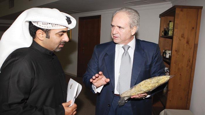 السفير اليوناني متحدثاً للزميل حمد العازمي