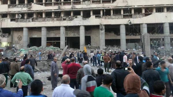 وتناثر الحطام لمئات الأمتار حول المبنى. ورقدت جثة غارقة في بركة دم قرب محرك سيارة محترق. وساد التوتر أمام مديرية أمن القاهرة وصاح سكان ومارة واصفين مرتكبي الهجوم بأنهم خونة وكلاب.