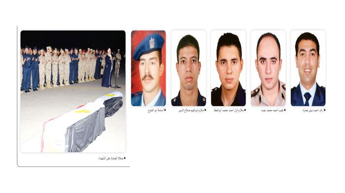 وأصدر العقيد أحمد محمد علي المتحدث العسكري للقوات المسلحة بيانا قال فيه ان احدى طائرات الهليكوبتر التابعة للقوات الجوية تحطمت خلال تنفيذ أعمال المداهمة المكلفة بها لمعاونة العمليات العسكرية التي تقودها القوات المسلحة ضد العناصر التكفيرية بشمال سيناء، وأسفر الحادث عن استشهاد كل من رائد طيار أحمد نبيل عمارة، ونقيب أحمد محمد عبده وملازم أول طيار أحمد السيد أبوالعطا وملازم جوى ابراهيم محمد صلاح الدين فرج ومساعد أسامة أبوالفتوح عبدالرازق.