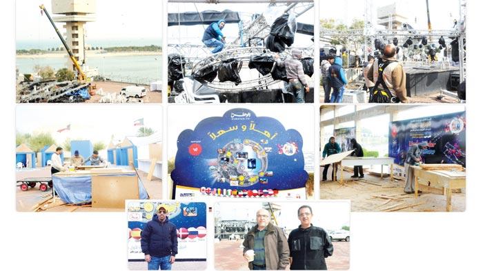 < عادل العجمي من العلاقات العامة: «نحن بصدد الانتهاء من اللمسات النهائية للديكور، والاضاءة، والتجهيزات الخاصة بالنقل المباشر، بفضل التسهيلات، والدعم الكبير، وتذليل كل الصعوبات من قبل القائمين على شركة المشروعات السياحية، وأيضاً قمنا بعمل بروفات مكثفة لعملية دخول وخروج الجمهور، بحضور «الاطفاء»، و«الداخلية»، مع وضع الارشادات المهمة في حالة الطواريء، وهذا العام قمنا بتوسعة المساحة المقررة للحضور من 500 الى 800 كرسي، وأيضاً تنظيم حالات الازدحام ووقوف الأطفال أمام المسرح، وضمان الراحة قبل كل شيء، ومفاجآتنا هذا العام قرية «بوقتادة وبونبيل» بالمجسمات، من خلال ثلاثة عروض بشكل يوميا».