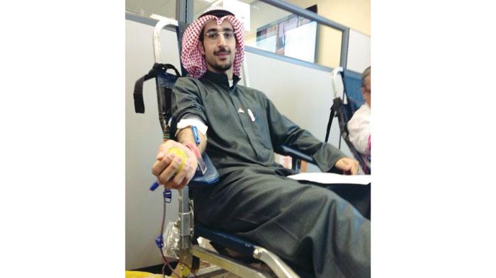 أحد موظفي البنك يتبرع بالدم