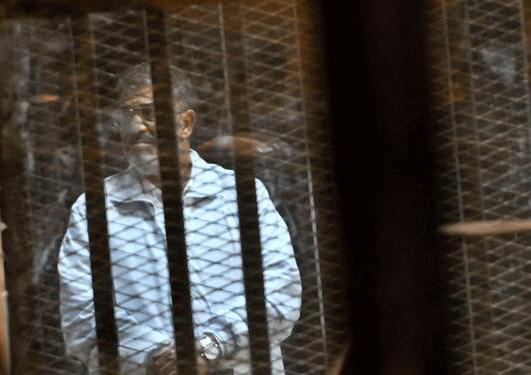 وظهر مرسي في لباس الحبس الاحتياطي الابيض منفردا في قفص اتهام زجاجي، فيما ظهر 7 اخرون في جماعة الاخوان المسلمين من بينهم عصام العريان ومحمد البلتاجي القياديان في حزب الحرية والعدالة الذراع السياسي للاخوان في قفص زجاجي اخر، حسبما قال صحافي في وكالة فرانس برس.