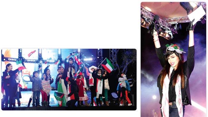 كرنفال عائلي في حب الكويت بالملابس والأعلام وأجمل الأغاني الوطنية مع أنوار «فلاشات» المحمول