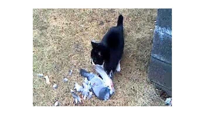 أظهر مقطع فيديو تم نشره عبر موقع 'youtube' وتداوله ناشطون عبر مواقع التواصل الاجتماعي مشهداً نادراً لأحد الطيور 'حمامة' وقعت ضحية لقط بري تمكن من اصطيادها مباغتة.