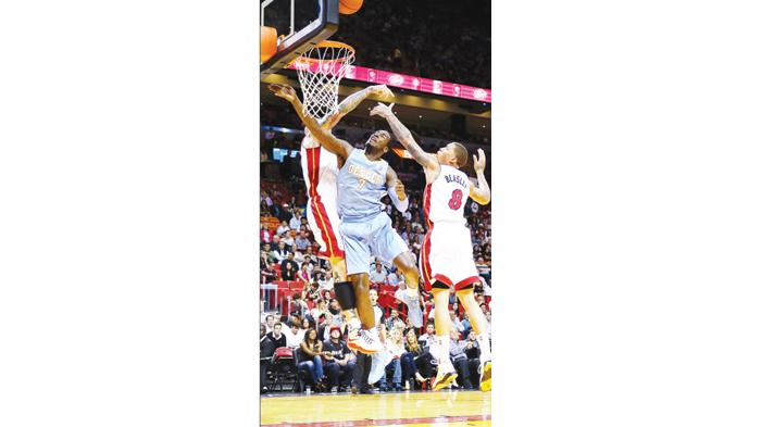 لقي ميامي هيت بطل الدوري الأمريكي للمحترفين في كرة السلة في الموسمين الماضيين خسارته الخامسة في آخر ست مباريات بعد ان سقط امام دنفر ناغتس 111/107.