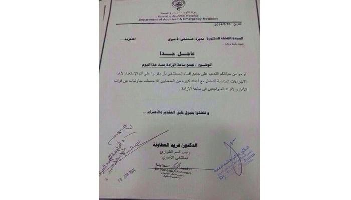 أكدت وزارة الصحة أن التعميم على المستشفيات لتكون مستعدة بالتزامن مع تجمع ساحة الإرادة إجراء روتيني وطبيعي في التعامل مع اي مناسبة جماهيرية أو تجمع عام.