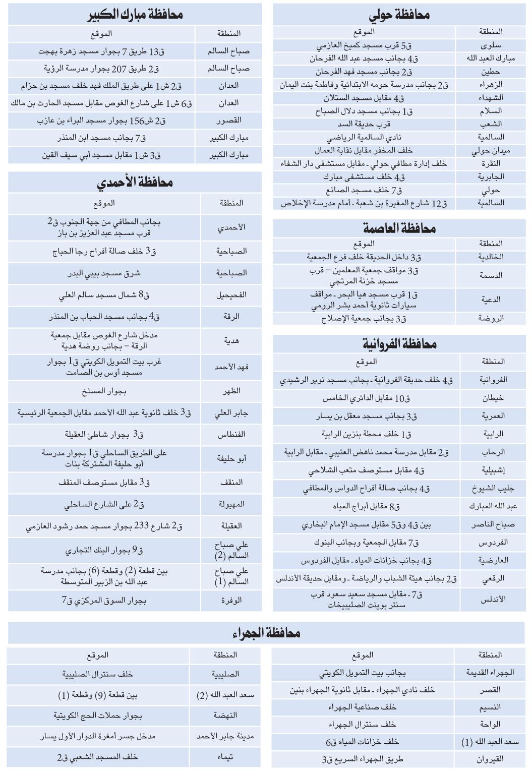 بواقع 16 مصلى في العاصمة و13 في حولي، و11 في الجهراء، و13 في الفروانية، و17 في الأحمدي،