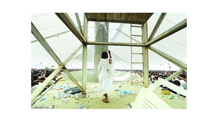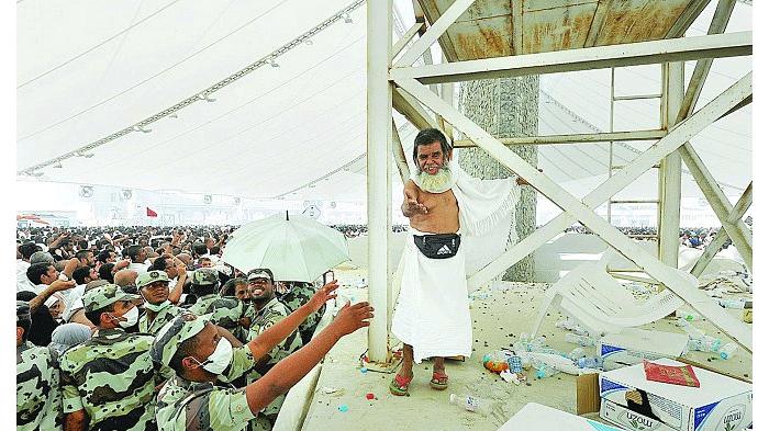 نشرت صحيفة "الرياض" السعودية، السبت، مجموعة من الصور لأحد الحجاج المسنين الذي يتميز بصغر حجم جسده عندما فاجأ الحجاج أثناء رميهم جمرة العقبة الكبرى وصعد على الحاجز المحيط بالجمرة كي يتمكن من رميها بكل يسر وسهولة في مشهد أذهل الجميع.