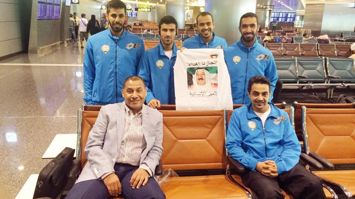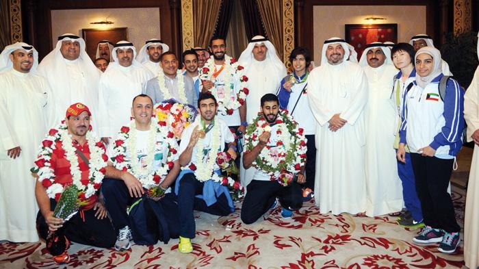 وزير الإعلام والشيخ طلال الفهد في لقطة جماعية مع وفد الكراتيه