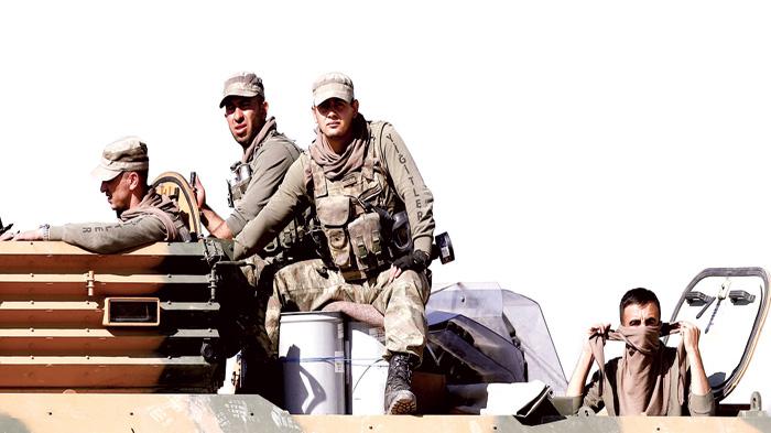 جنود أتراك خلال دورية بالقرب من كوباني حيث المواجهات مع «داعش» أمس