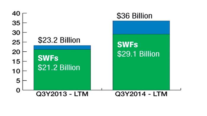 وعندما نحصر قيمة الصفقات الاستثمارية المباشرة على الصفقات العقارية التي ابرمتها الصناديق السيادية في القطاع العقاري نجد انها بلغت 29.11 مليار دولار لعام 2014 مقابل 21.15 مليار دولار لعام 2013، وهكذا يتضح ان الصناديق السيادية تحتل مركز الصدارة في ابرام الصفقات الاستثمارية العقارية في العالم.