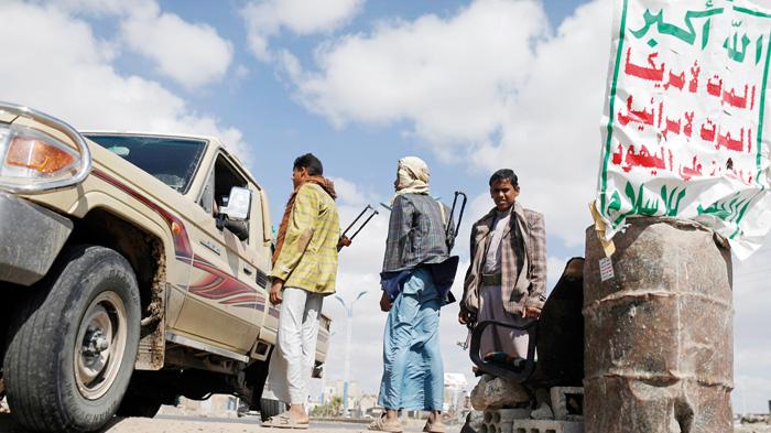 عناصر مسلحة من الحوثيين عند نقطة تفتيش في صنعاء أمس (رويترز)