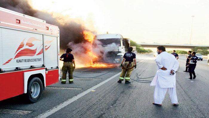 وفي التفاصيل تلقت غرفة العمليات بالداخلية بلاغاً عن احتراق شاحنة على طريق الملك فهد باتجاه الشاليهات، وعلى الفور توجه رجال اطفاء ميناء عبدالله ودوريات مرور الطرق السريعة والاسعاف، وتمت مكافحة الحريق الذي أسفر عن احتراق الشاحنة ونجاة قائدها الباكستاني الجنسية.