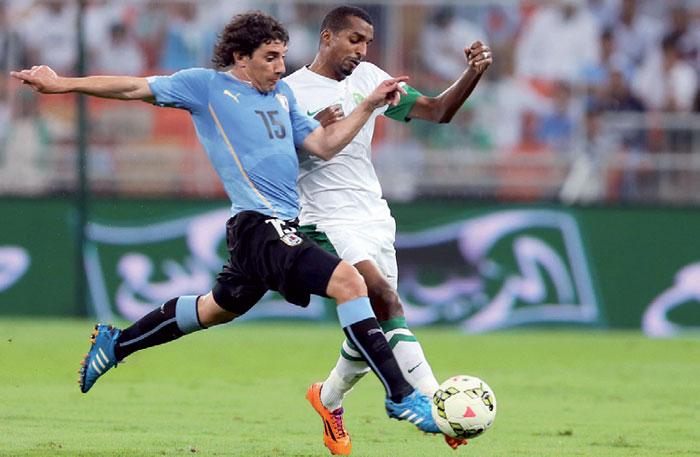 تعادل المنتخب السعودي لكرة القدم مع ضيفه الاوروغوياني 1-1 في المباراة الدولية الودية التي اقيمت على استاد مدينة الملك عبدالله الرياضية في جدة في اطار استعدادات الاول لخليجي 22 على ارضه الشهر المقبل وكأس آسيا 2015 في استراليا.