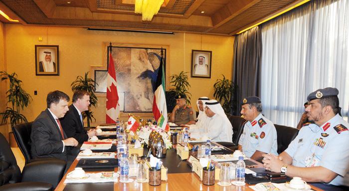 استقبل نائب رئيس مجلس الوزراء ووزير الدفاع الشيخ خالد الجراح الصباح بمكتبه صباح امس، وزير الخارجية الكندي جون بيرد والوفد المرافق له بمناسبة زيارته للبلاد، وتم خلال الاجتماع تبادل الاحاديث الودية، ومناقشة أهم الأمور والمواضيع ذات الاهتمام المشترك، لاسيما المتعلقة بالجوانب العسكرية، مشيدا بعمق العلاقات الثنائية بين البلدين الصديقين وحرص الطرفين على تعزيزها وتطويرها.
