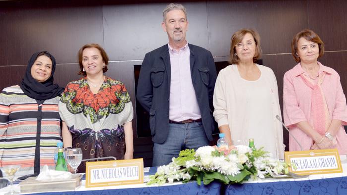 ليلى الغانم والمشاركون في المؤتمر الصحافي