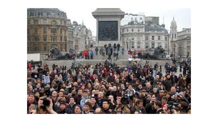 ووضع بعض المتظاهرين اقنعة مماثلة لتلك التي يضعها اعضاء حركة «انونيموس» للقرصنة المعلوماتية ورفعوا لافتة ضخمة كتب عليها «ديموقراطية حقيقية الآن»، وذلك في تحرك احتجاجي يأتي عشية تظاهرة مطلبية ينظمها اتحاد يضم أبرز نقابات العمال في بريطانيا.